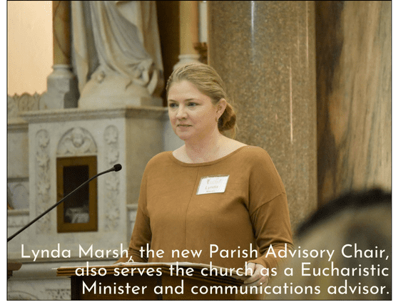 Lastly, I wish to let you know about a recent change to our Parish Advisory Board. Our chair, Laura Prather, has stepped down, with current board member Lynda Marsh taking on the role as the new chair. We will use this transition as a way to reorganize and to strengthen the Parish Advisory Board, and its connection with our parishioners. The board serves a vital role in helping serve our parish, and I thank Laura for all of her efforts in steering the board over these last few years.
