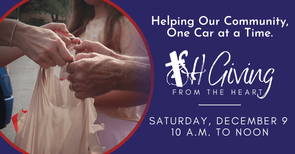In our continued effort to meet the growing needs of our community, Sacred Heart is holding its latest Giving from the Heart drive-through donation event on Saturday, December 9, at the North Campus from 10 a.m. to noon. Volunteers from our Open Doors and Bikes from the Heart ministries will be on hand for this special event ahead of Christmas that benefits the Bikes ministry and Catholic Charities respectively.