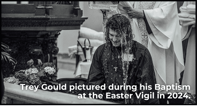 Trey Gould, received into the Church at the Easter Vigil through O.C.I.A. in 2024, says volunteering in faith formation has been a great way for him to stay involved at the parish. “I see a reflection of myself in everyone (in O.C.I.A.) and it brings me closer to the faith. I always find I learn something new even if the lessons and faith sharing isn’t directed to me specifically.”