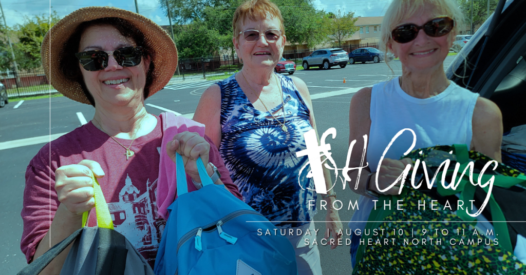 The average cost of school supplies per student in 2023 totaled $591. The National Education Association estimates that teachers spend between $500 and $750 of their own money annually to stock their classroom with necessities often needed by students, and that number is in addition to the allotments they are provided by their school. Sacred Heart is holding its latest Giving from the Heart drive-through donation event on Saturday, August 10, at the North Campus, from 9 to 11 a.m. to help alleviate some of these burdens for the families, students, and teachers of nearby St. Peter Claver Catholic School.