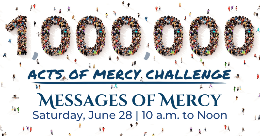You’re invited to help us craft these Messages of Mercy on Saturday, June 28, from 10 a.m. to Noon in the North Campus Auditorium. All are encouraged to bring along additional craft items like paper, glue or glue-sticks, stickers, glitter, or markers. An adult must accompany children under the age of 18. All are welcome! RSVP by clicking the button below.