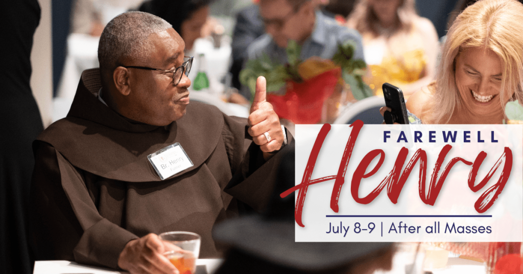 Following each Mass on the weekend July 8-9, a special reception will be hosted in St. Francis Hall for parishioners to wish Friar Henry well as he departs for his next assignment at Holy Name College in Silver Spring, Maryland.